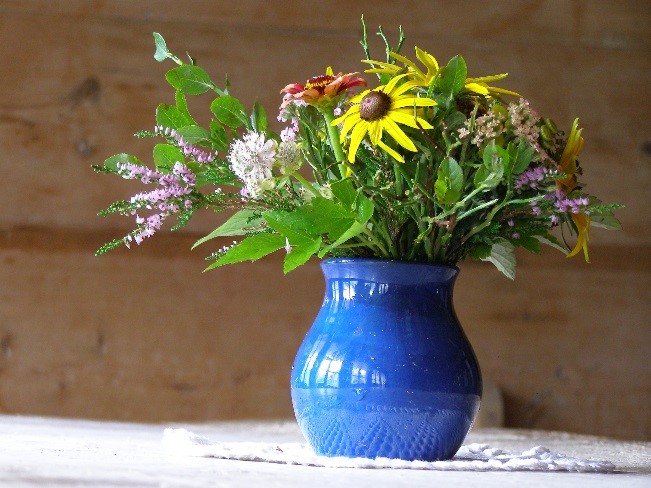 Mom regularly hiked the hillsides of our 28 acre farm gathering wild flowers and herbs like Golden Rod and Wild Heather, anything with color value. She consistently prepared fresh cut bouquets for our kitchen table. On special occasions, like funerals and weddings, while others relied on professional florists, she humbly represented our family with her own arrangements. It wasn’t until I went away to college that I fully appreciated the inexpensive elegance of a fresh cut bouquet. Even today, I’m able to close my eyes and imagine the faint perfume of her handpicked flowers…their scent carried along on a breeze only made visible by the curtains’ rustle.