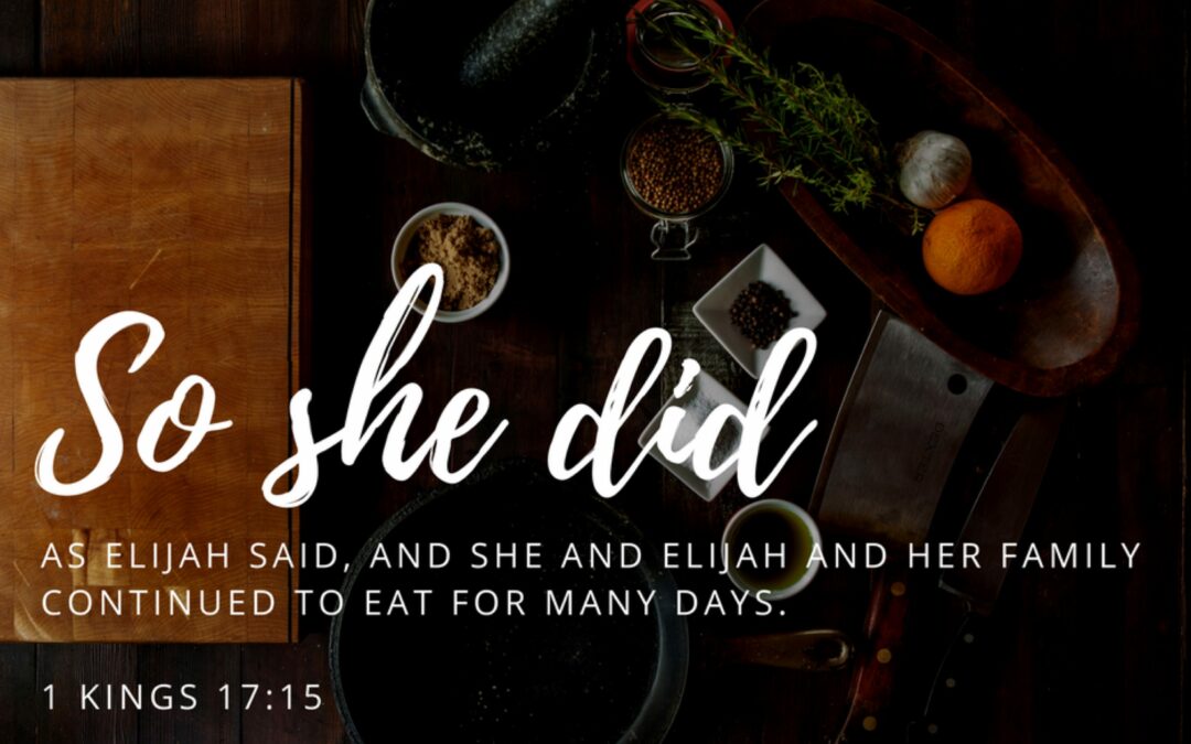 He doesn’t always end the drama (check out verses 17-24 to see what happened after the drought-oil-flour fiasco) but He honors our acts of faith and redeems our ridiculous circumstances. Drought and famine are no match for Living Water and the Bread of Life.